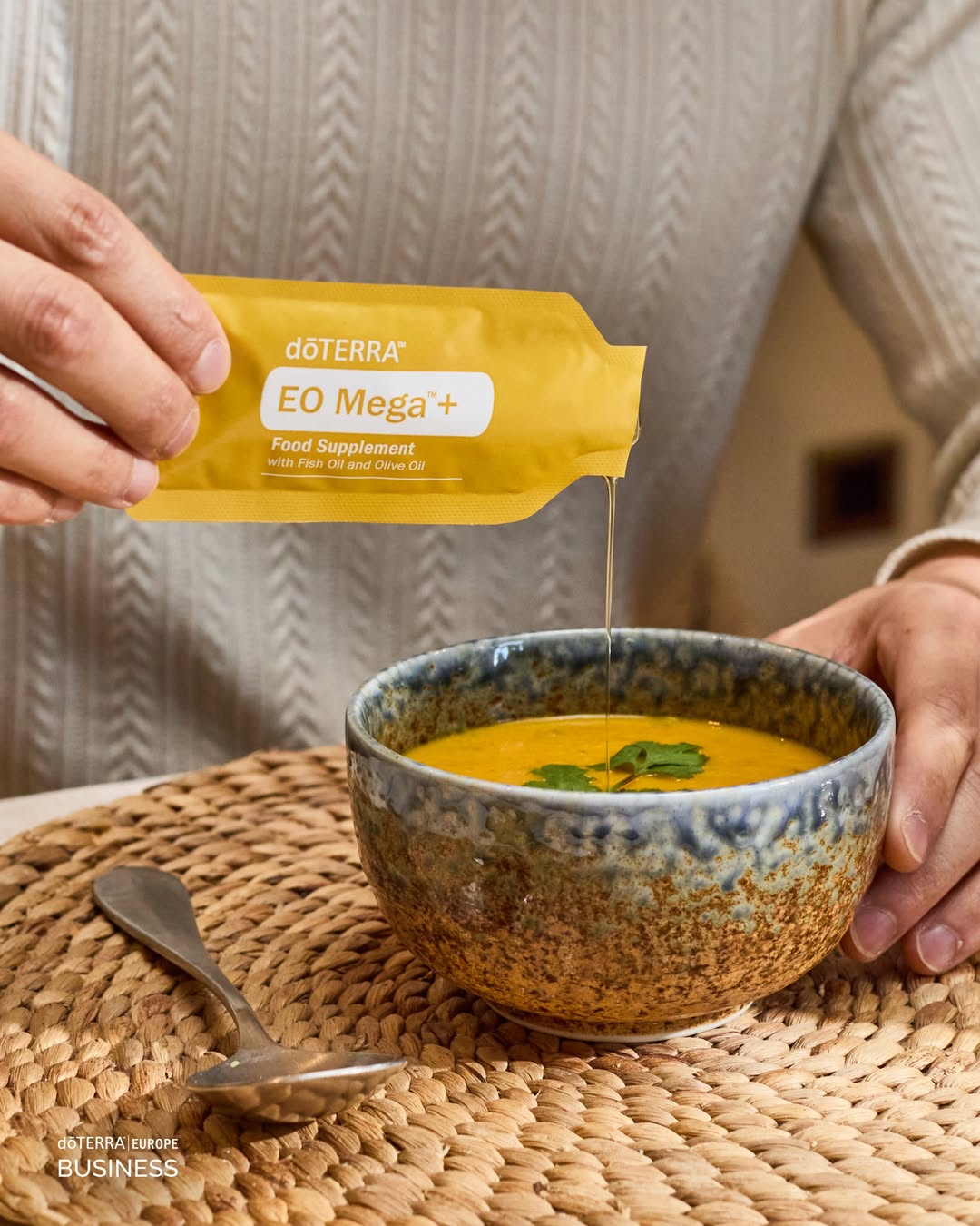 EO Mega+ is a high-quality blend of omega fatty acids derived from wild fish from the Nordic Seas. The product contains lemon essential oil rich in limonene and extra virgin olive oil sourced through our Greek partners as part of the Co-Impact Sourcing™ initiative. Our partnership with Norway allows us – through a combination of traditional knowledge, modern technology, and experience – to create the purest, traceable fish oil possible. Each serving of the product provides over 5000 mg of fish oil containing more than 1000 mg of essential omega-3 fatty acids, including EPA (eicosapentaenoic acid) and DHA (docosahexaenoic acid). Essential fatty acids are vital nutrients that have an extremely beneficial effect on us, and since the human body cannot produce them on its own, we must obtain them from our diet or take them as supplements. EO Mega+ fills this nutritional gap, providing a convenient source of essential fatty acids enclosed in compact sachets. Now you can enjoy the benefits of omega acids wherever you are – just as nature intended.